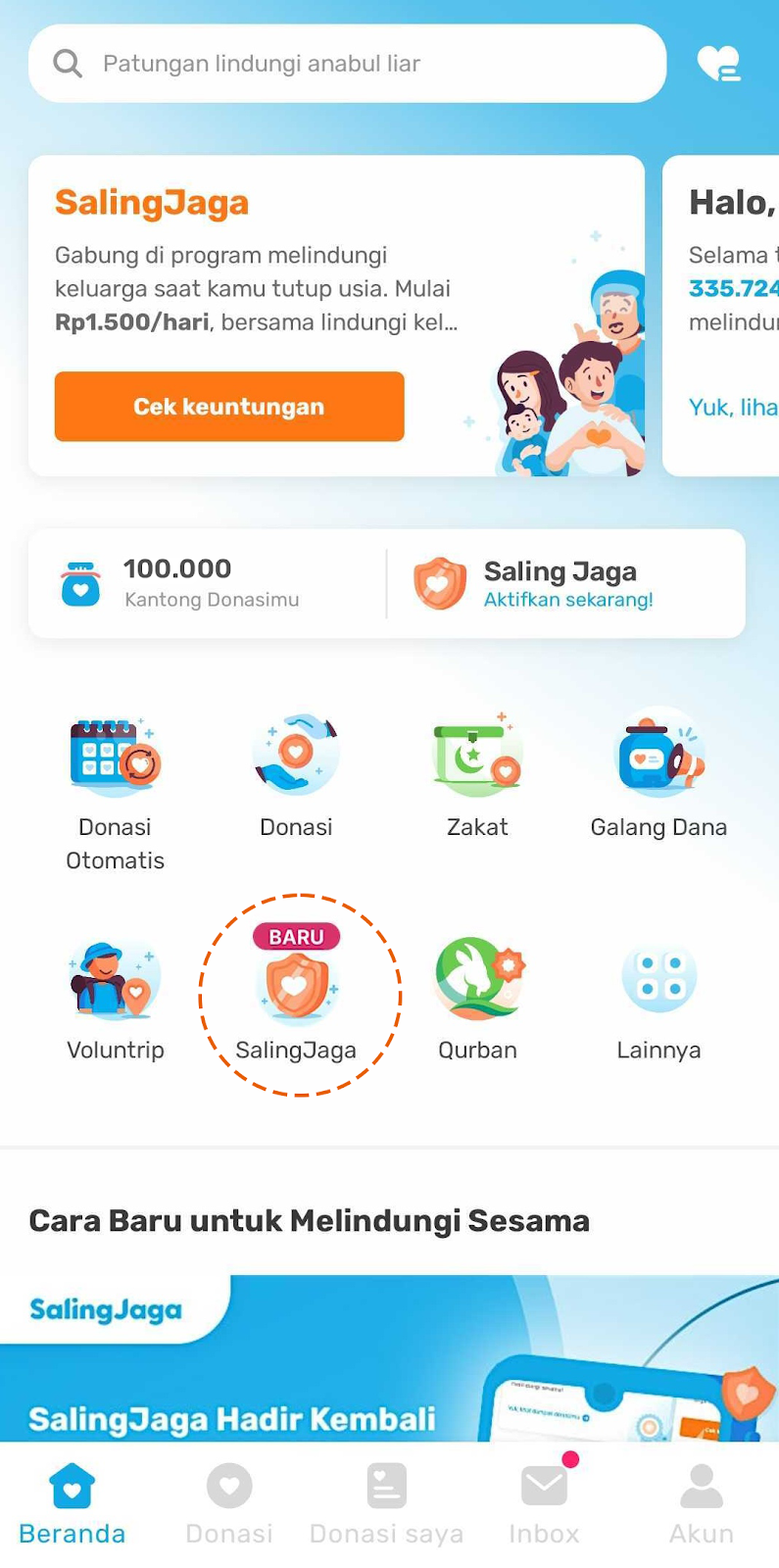 - Pilih menu SalingJaga;