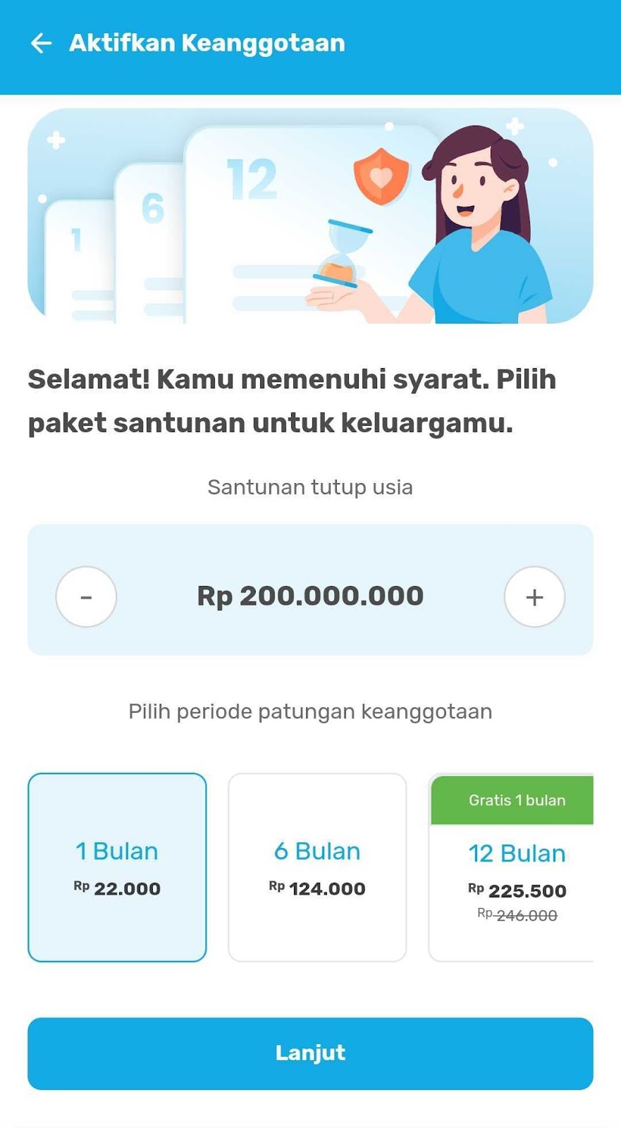 - Pilih paket santunan dan periode patungan keanggotaan sesuai kesanggupanmu;