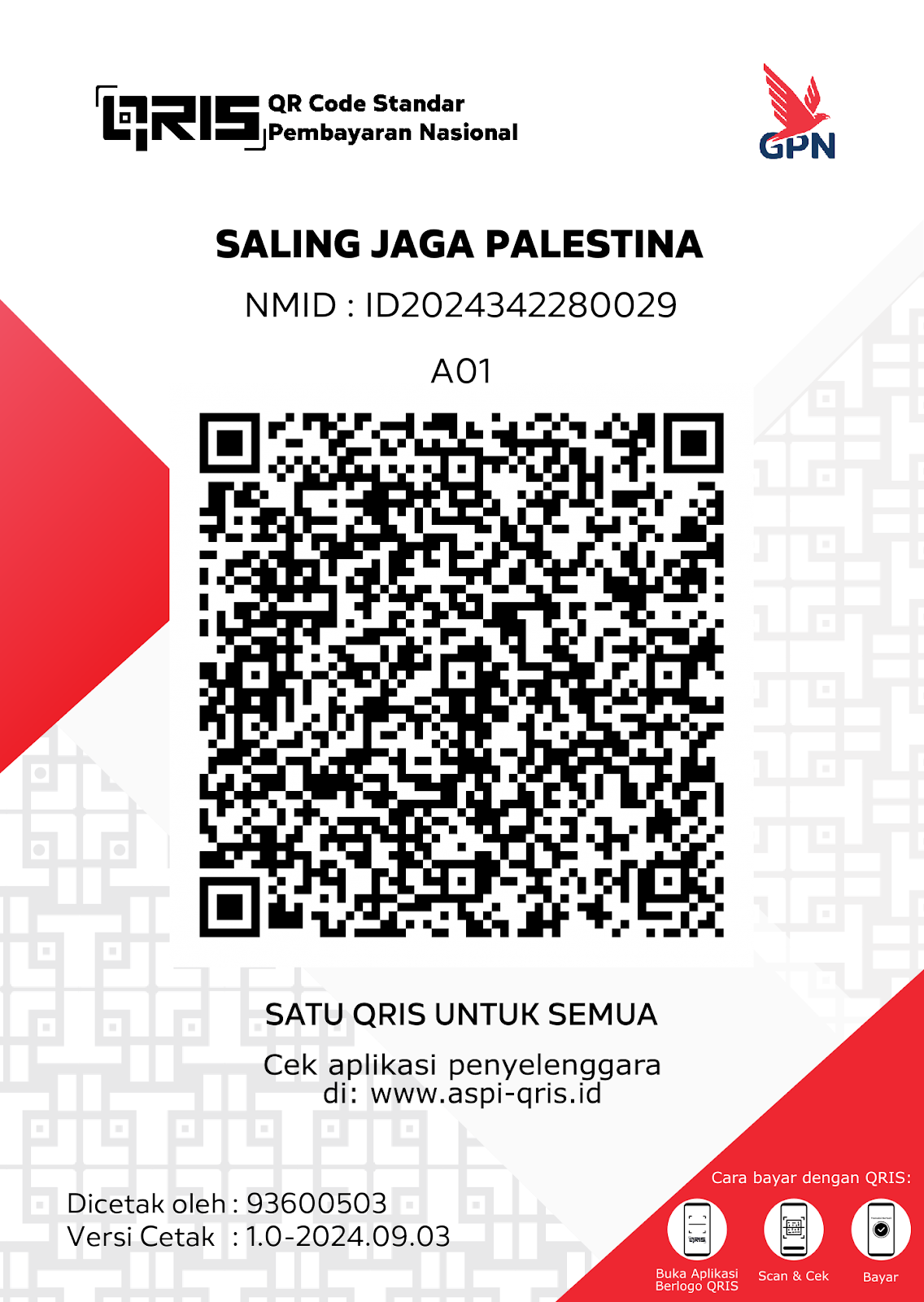 Untuk berkontribusi memberikan wakaf uang ke Dana Abadi Palestina dapat pula dilakukan melalui scan QR Code di bawah ini: