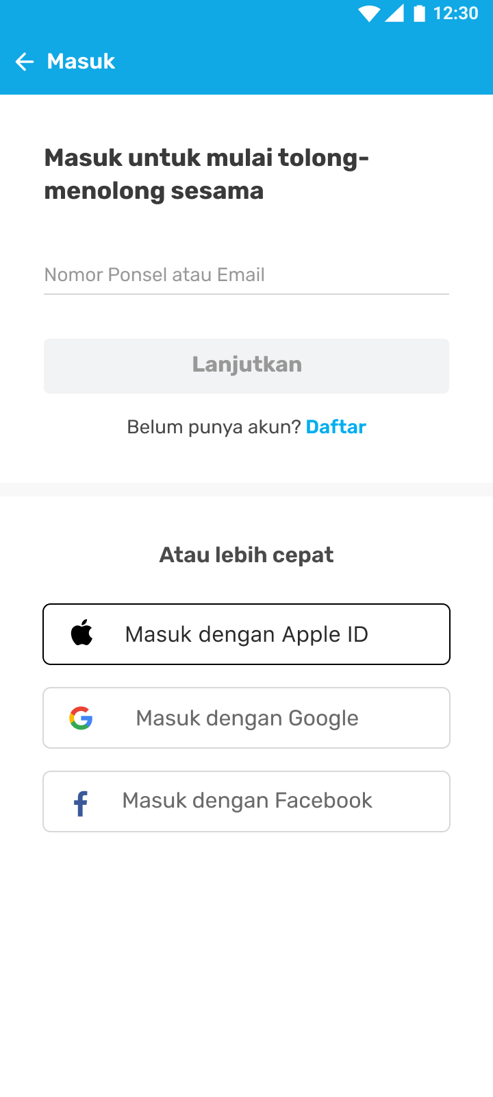 - Masukkan nomor ponsel yang terdaftar pada akun dan klik “Masuk”