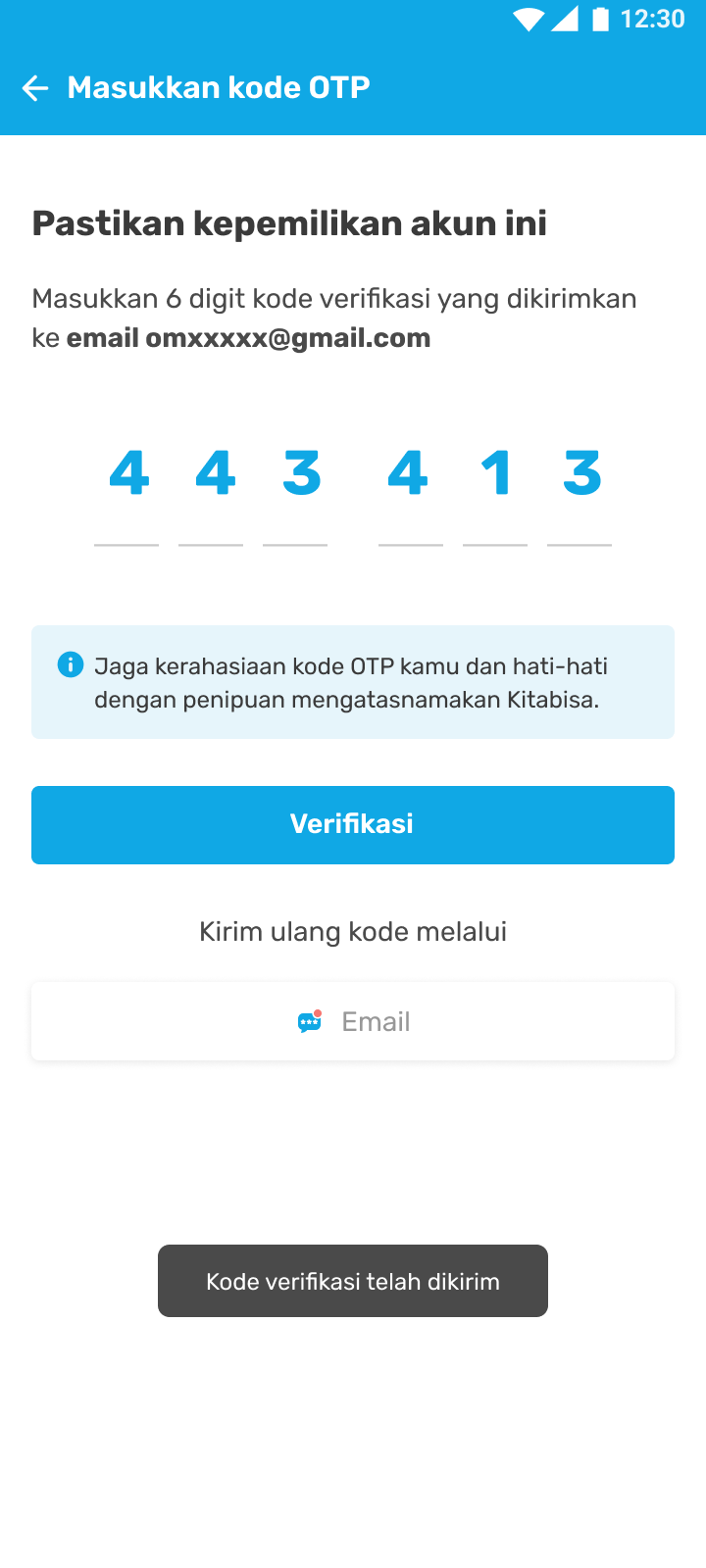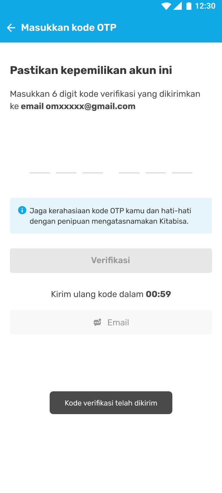 - Cek kode OTP yang dikirim ke e-mail yang terdaftar, lalu masukkan 6 digit kode OTP.